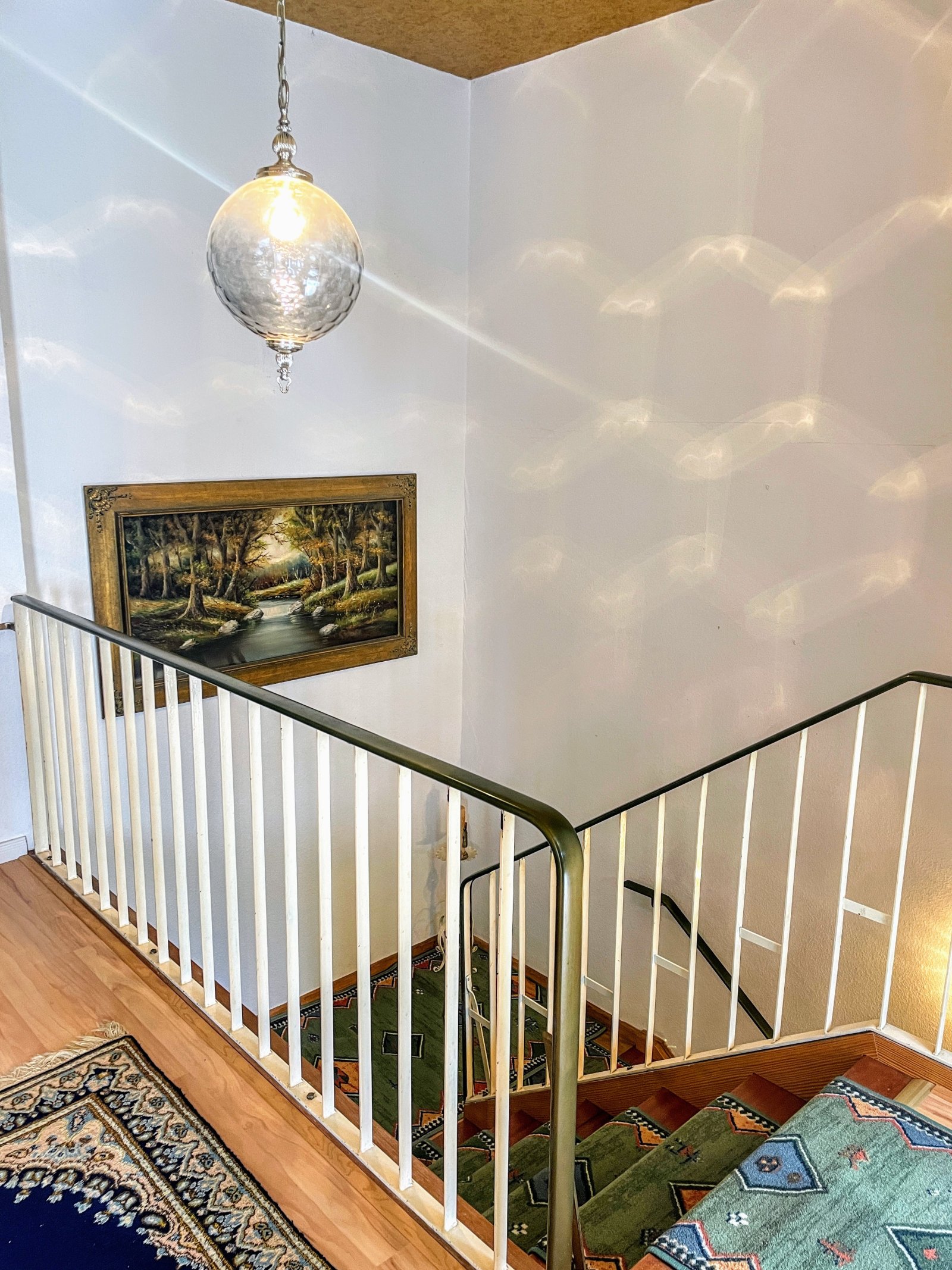 Die 1969 gebaute Immobilie verfügt ebenerdig nebst Hauseingang die Garage, Abstellfläche, Waschküche und Technik. Im 1. Obergeschoß befindet sich das große Wohn- und Esszimmer mit Südbalkon, Küche, Gäste-WC sowie Wintergarten. Das 2. OG bietet mit 3 Schlafzimmern, Balkon und Tageslichtbad eine sonnige und geräumige Schlafatmosphäre. Der Wintergarten bildet das Herzstück des Hauses. Hier kann man sich geschützt von morgens bis spät abends aufhalten. Außerdem geht man von hier aus direkt über die Außenterrasse in den großen schön angelegten Garten.