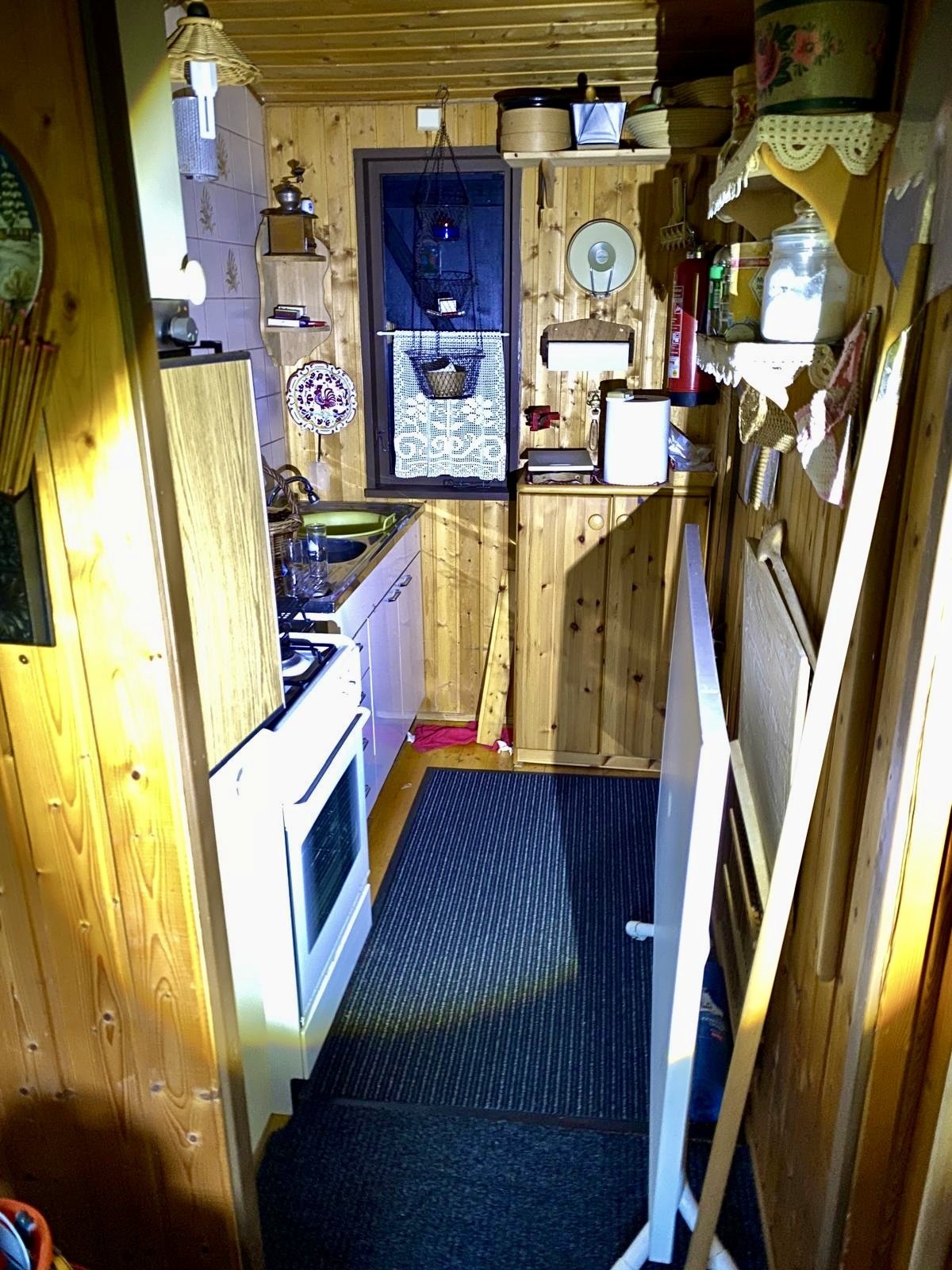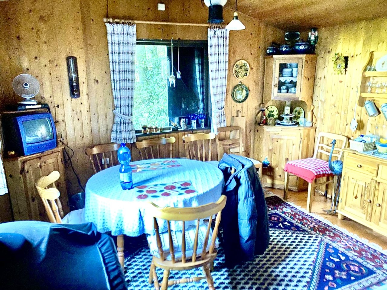 Die Hütte bietet eine Wohnfläche von etwa 40 m² und ist vollständig möbliert. Sie verfügt über ein Wohn- und Esszimmer, ein Schlafzimmer, Dusche und WC. Warmwasser ist vorhanden. Beheizt wird über einen Kaminofen.