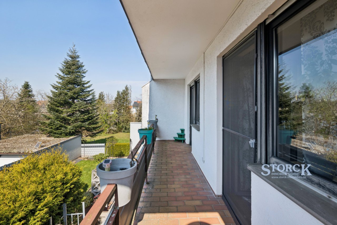 Das Obergeschoss umfasst drei Schlafzimmer, ein modernisiertes Badezimmer sowie einen Balkon. Das Gäste-WC wurde ebenfalls erneuert.