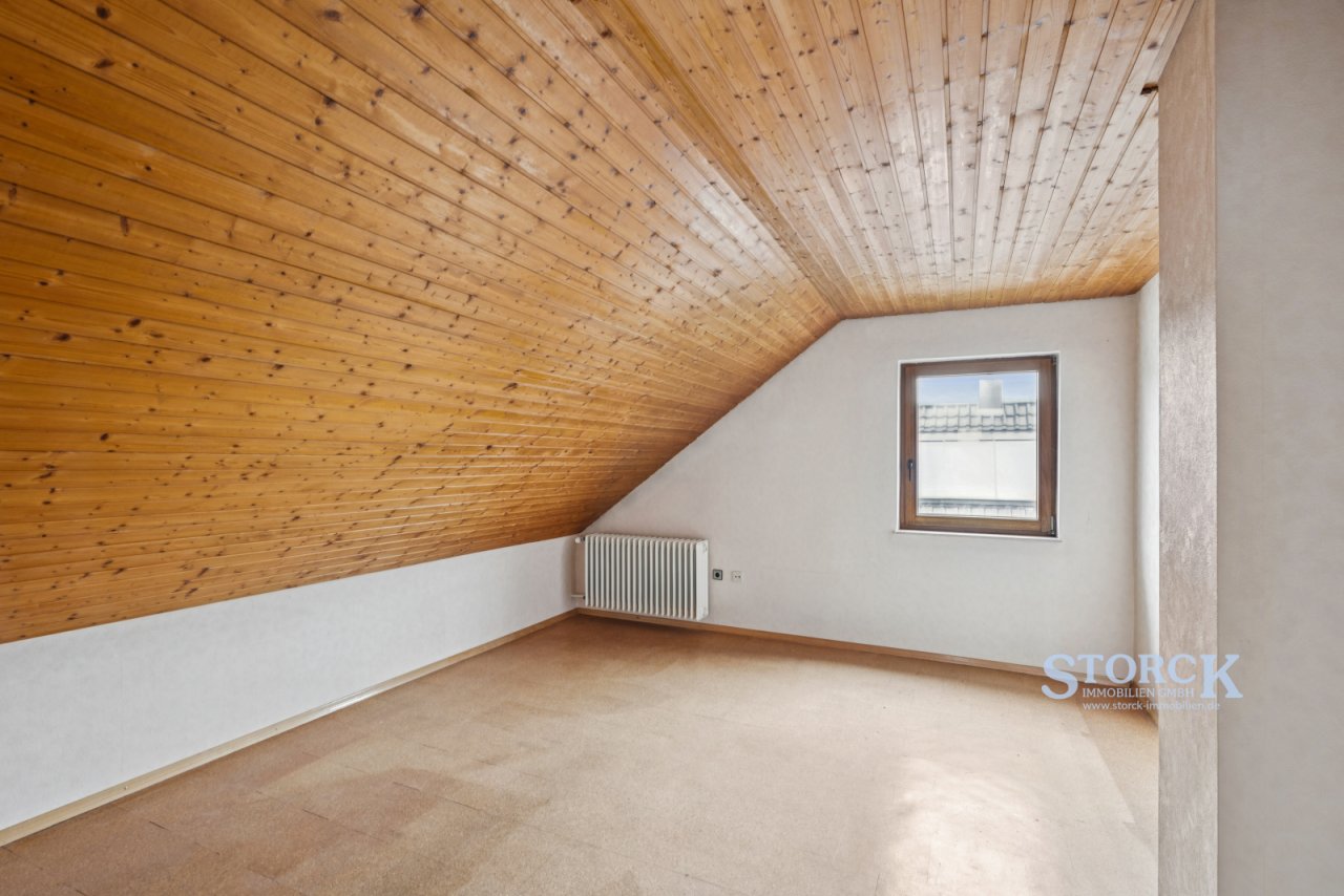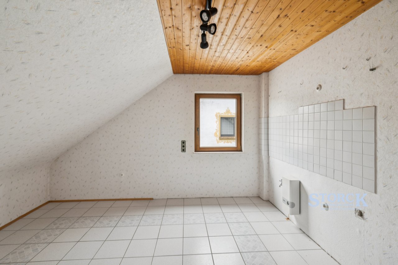 Das Dachgeschoss ist bereits zu einer eigenständigen Einheit ausgebaut und bietet ein großes Zimmer (alternativ zwei Zimmer nutzbar), eine Küche sowie ein Badezimmer.