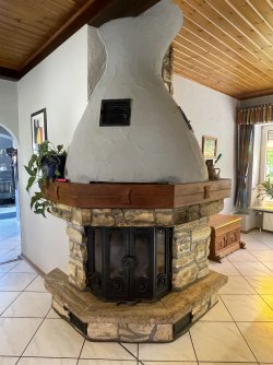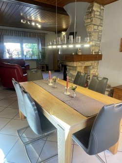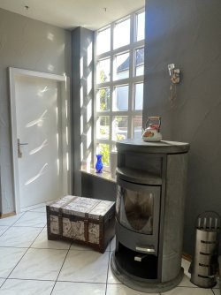 Im Erdgeschoß befindet sich eine großzügige Diele mit Zugang zum Gäste-WC und Keller sowie zu den oberen Etagen. Die große Küche sowie der offene Wohn- und Essbereich runden das Erdgeschoß ab. Hier kann man mit den beiden Kaminöfen jeweils zuheizen.